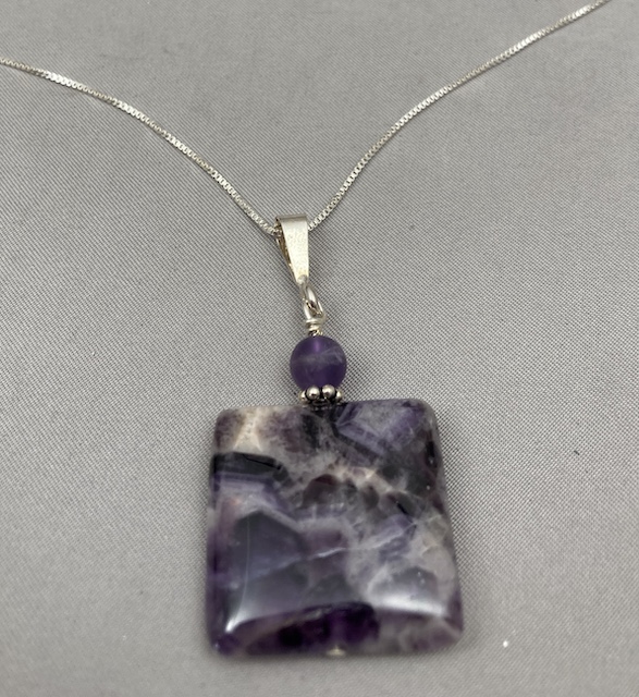Natural Dog Tooth Amethyst - striking and unique. Please note that due to the natural properties of this stone, the pendant you receive will not be identical to the pendant in the photo.