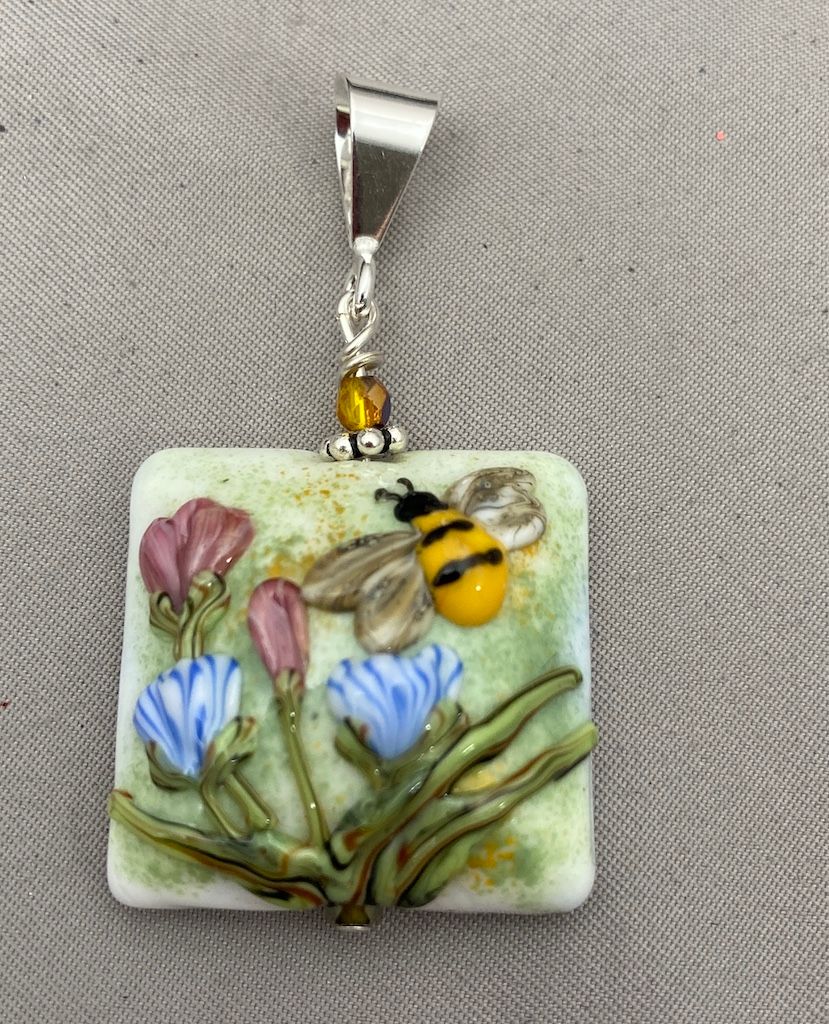 Handmade Lampwork Glass, Swarovski Crystal, Sterling Silver Bail