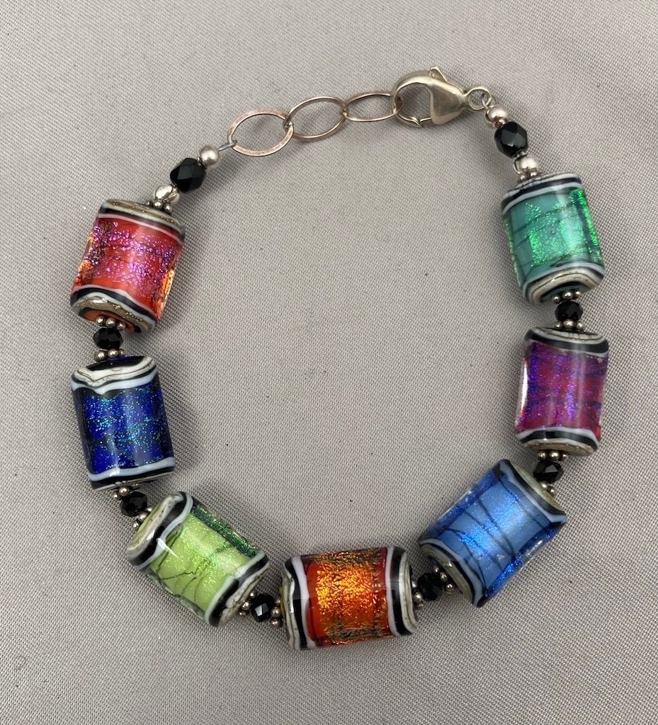 Handmade Lampwork Glass, Sterling Silver, Czech Crystals, Sterling Silver Clasp; adjustable - 7" - 7 3/4"