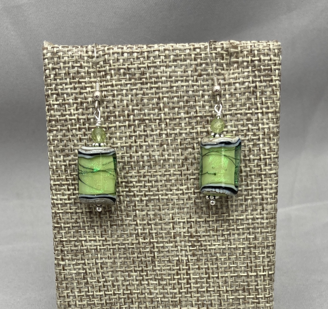 Handmade Lampwork Glass,Sterling SilverPeridot. Sterling Silver Ear Wires.