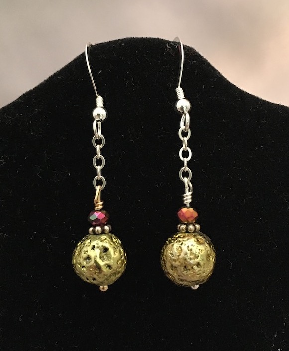 Fun and Funky Lime Lava suspended from Sterling Silver Chain, with Sterling Silver Accents and Czech Crystal