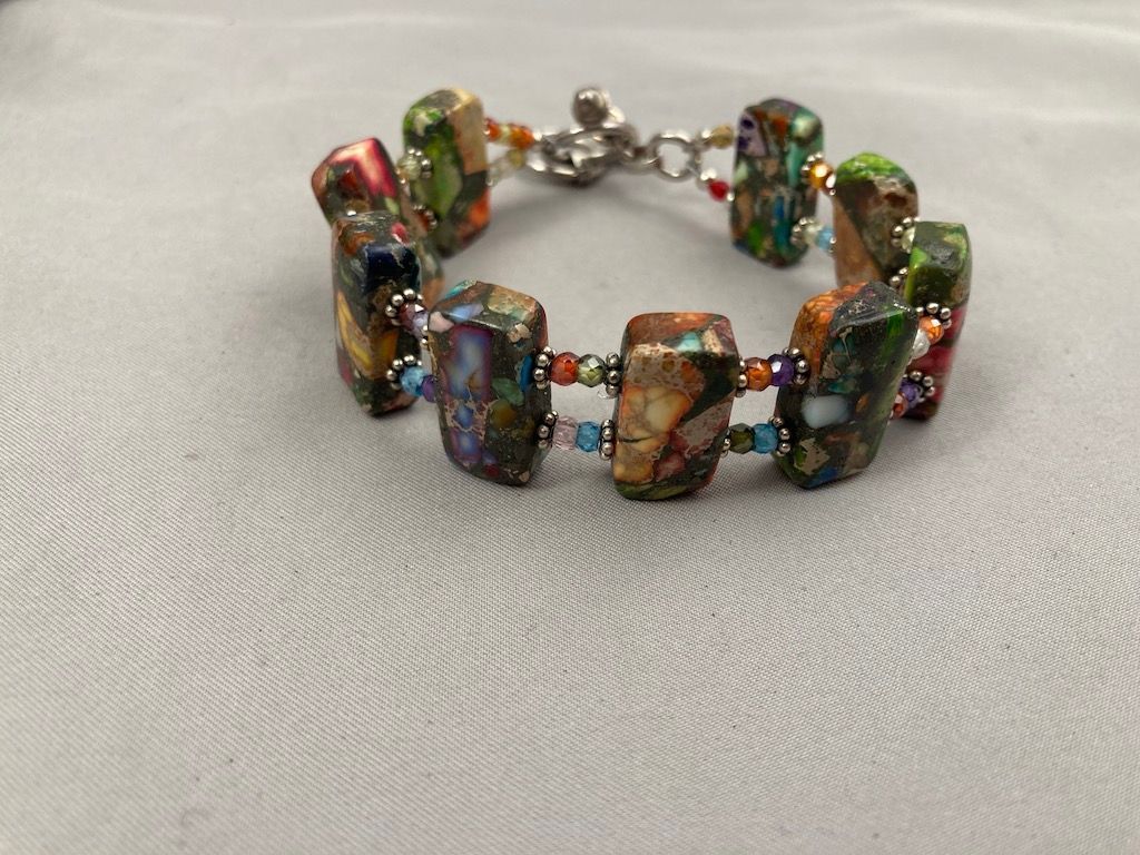 Mixed Impression Jasper, Swarovski Crystal, Sterling Silver Accents and Clasp - adjustable 7 3/4" - 8 1/2"