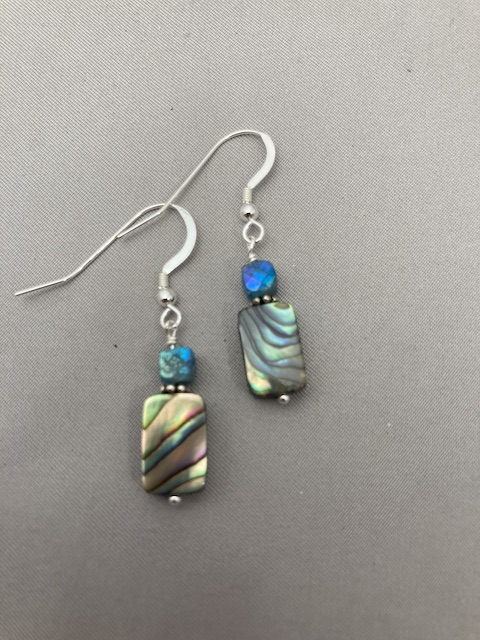 Mother of Pearl & Blue Apatite w Sterling Silver Ear Wires