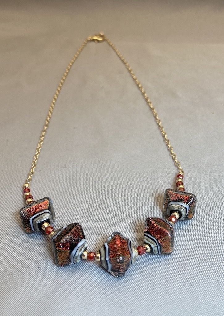 Red Lampwork Glass w Gold Filled Chain & Beads