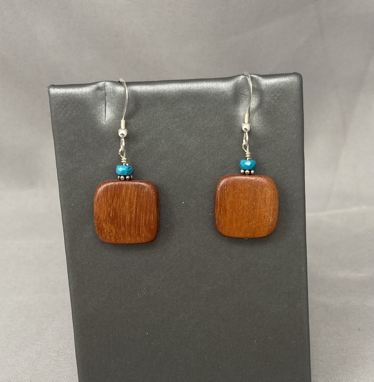 Redwood, Turquoise & Sterling Silver. Sterling Silver Ear Wires.