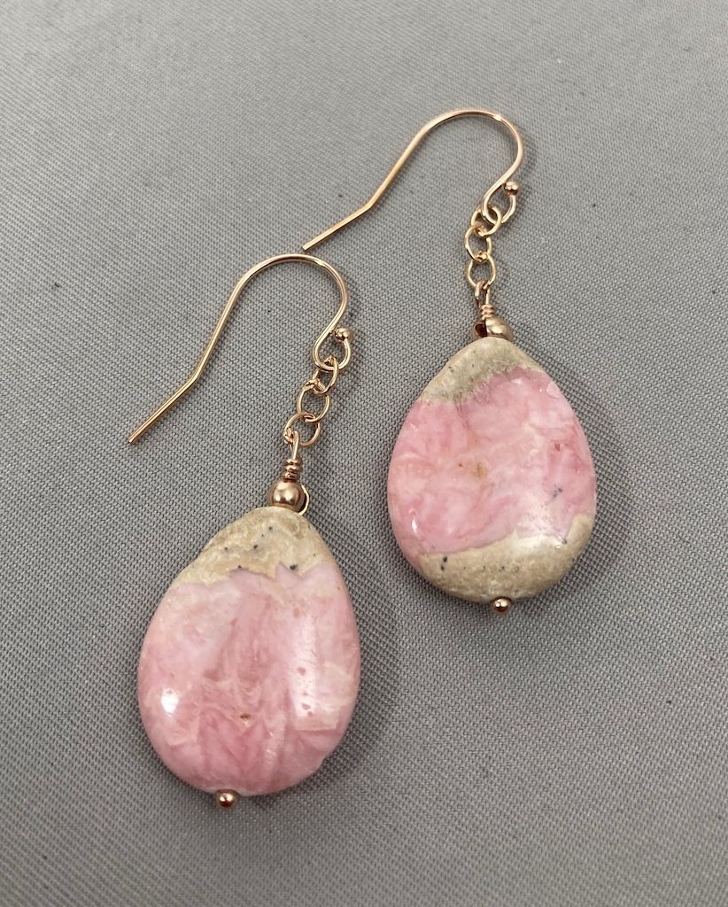 Rhodochrosite w Rose Gold Filled Accents & Ear Wires Search N-204 for Rhodochrosite Necklace